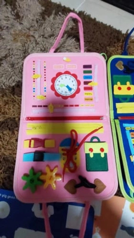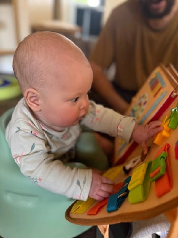 Avec MontessoriMini™, votre enfant découvre le monde à travers des boucles, boutons et fermetures. Ce tableau d'activités Montessori portable stimule sa motricité fine et sa curiosité, loin des écrans. Apprendre n'a jamais été aussi amusant !