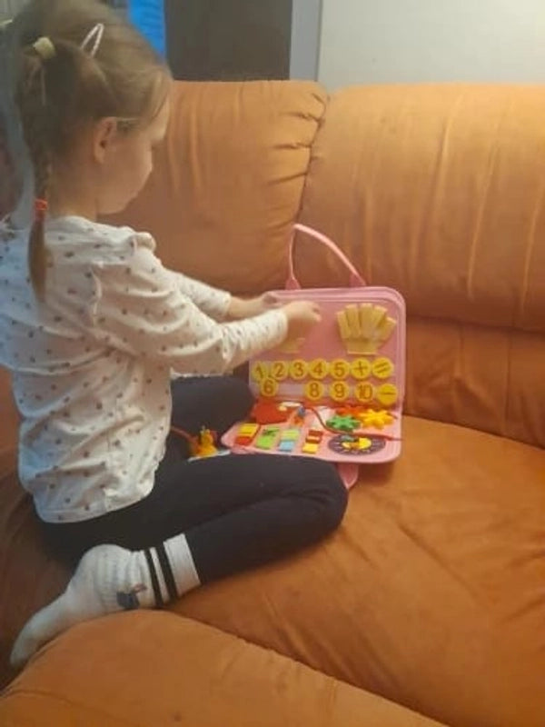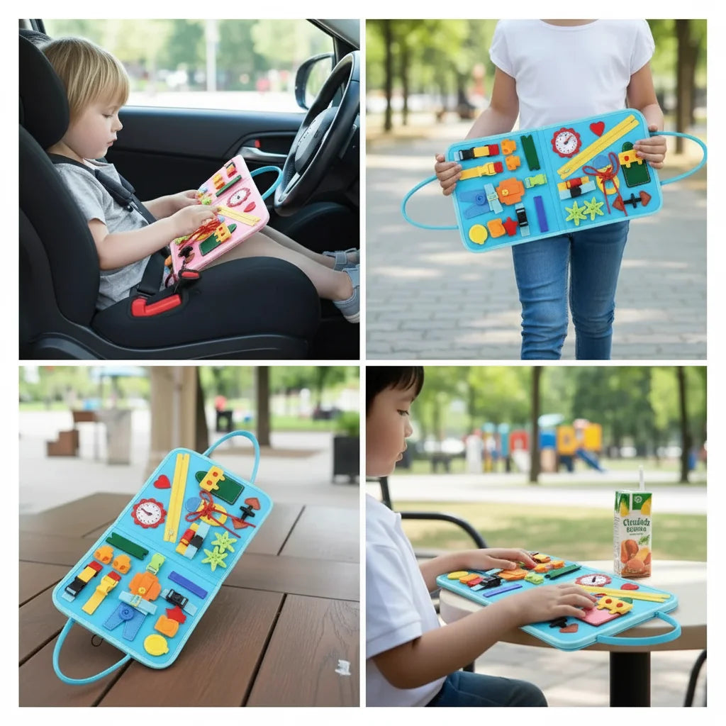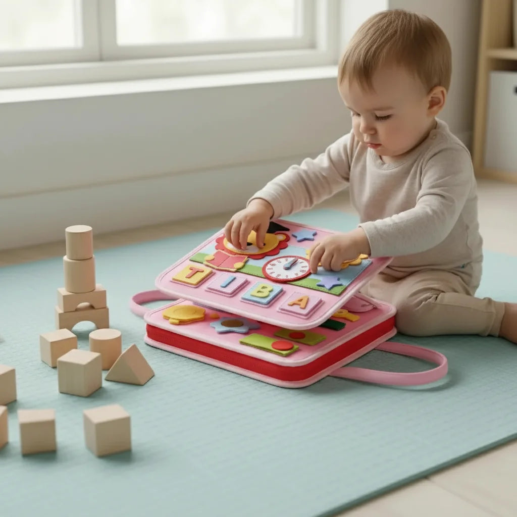 Oubliez les écrans et bonjour l'éveil ! Le MontessoriMini™ est une véritable salle de jeux portable pour les petites mains. Chaque boucle, chaque bouton est une opportunité unique pour votre enfant de développer sa motricité fine, sa logique et son autonomie. Imaginez-le concentré, absorbé, apprenant sans même s'en rendre compte. C'est le secret pour des enfants plus vifs, plus indépendants, et des parents plus sereins, que ce soit à la maison ou en voyage. Offrez-lui l'avantage MontessoriMini™ !