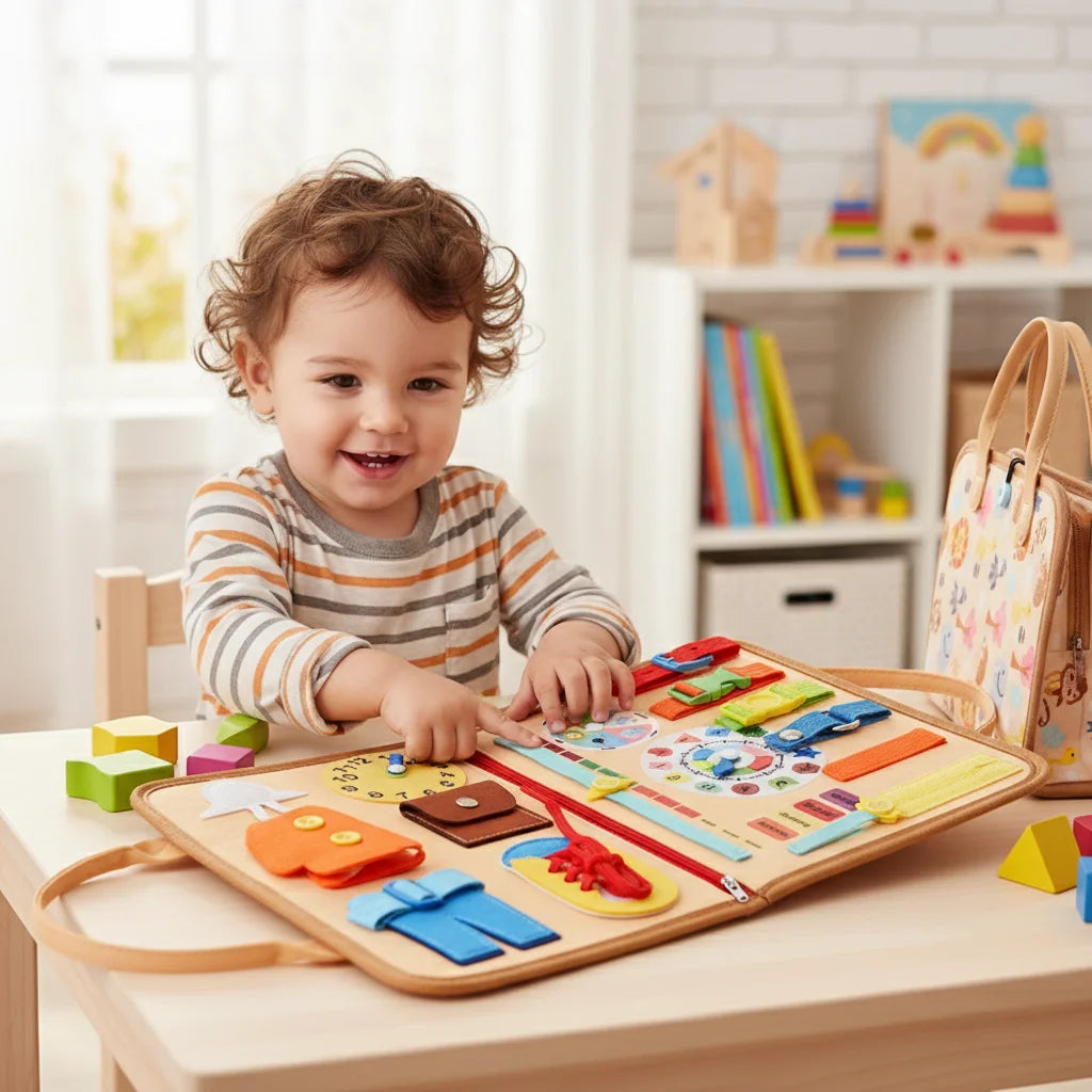 Chaque boucle, bouton et lacet est une chance d'apprendre. Développe la coordination et l'autonomie de votre enfant avec des défis amusants.